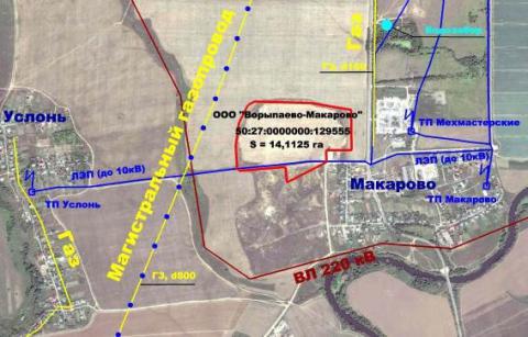 | н.д. | Водонапорная башня между д. Ворыпаево и д. Макарово | Трансформаторные подстанции в д. Макарово и в Мех. мастерских на север от д. Макарово. На схеме выше указаны пути прохождения воздушных ЛЭП напряжением до 10кВ, подключение к которым возможно методом отпайки. |